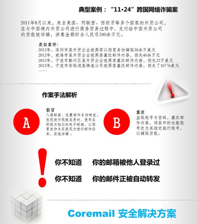 近期,一种专门针对进出口行业国外客户诈骗的案件呈现高发态势。犯罪嫌疑人通过木马等黑客技术盗取公司业务邮箱密码,注册相似邮箱或更改交易账户,与国外客户公司交流,向双方贸易公司发送欺诈性邮件,骗取双方事主货款。
